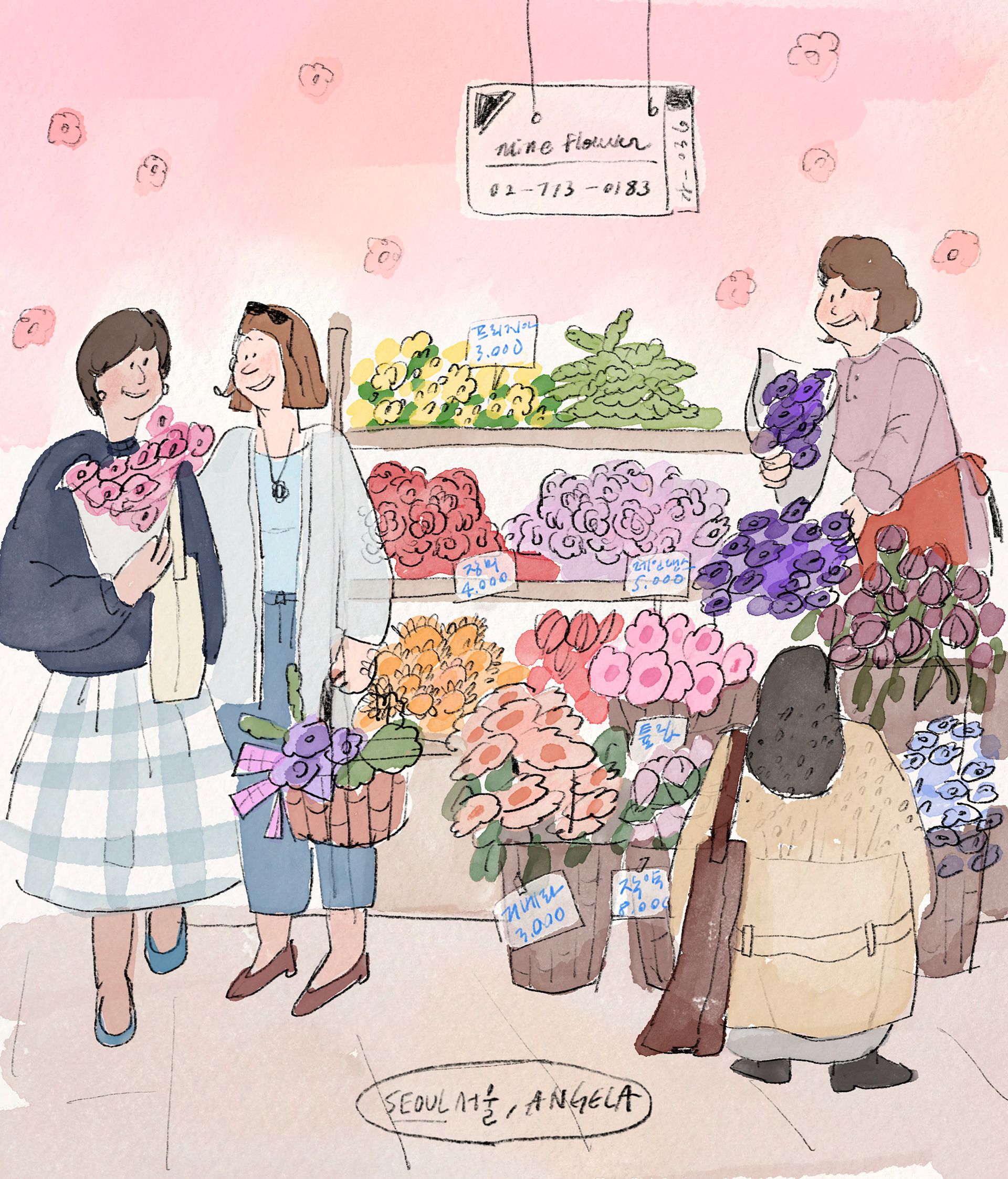 Tiny blooms in every color line the stalls of Namdaemun’s flower market.