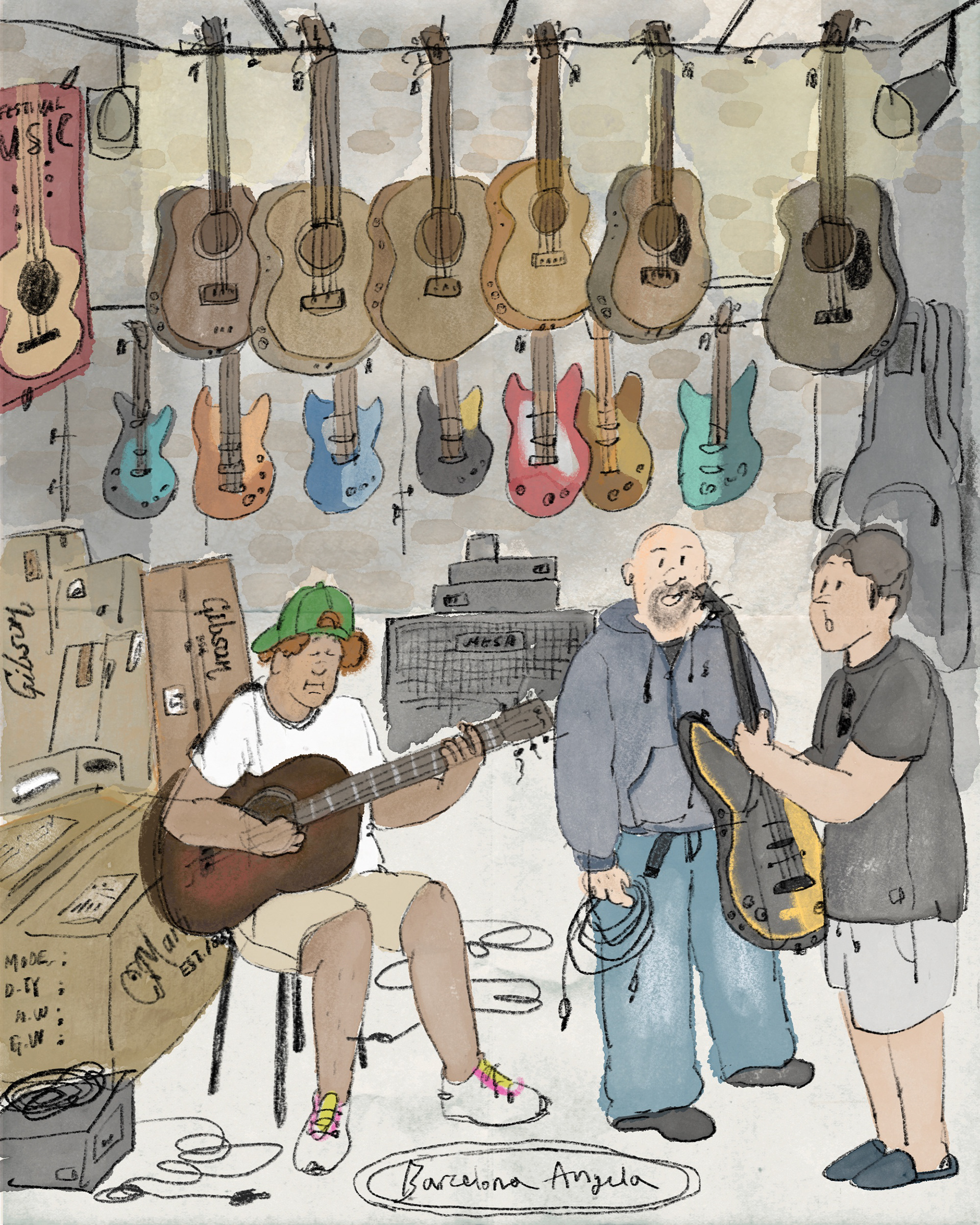 A small guitar shop tucked away on a quiet street in Barcelona. The warm sound of strings and