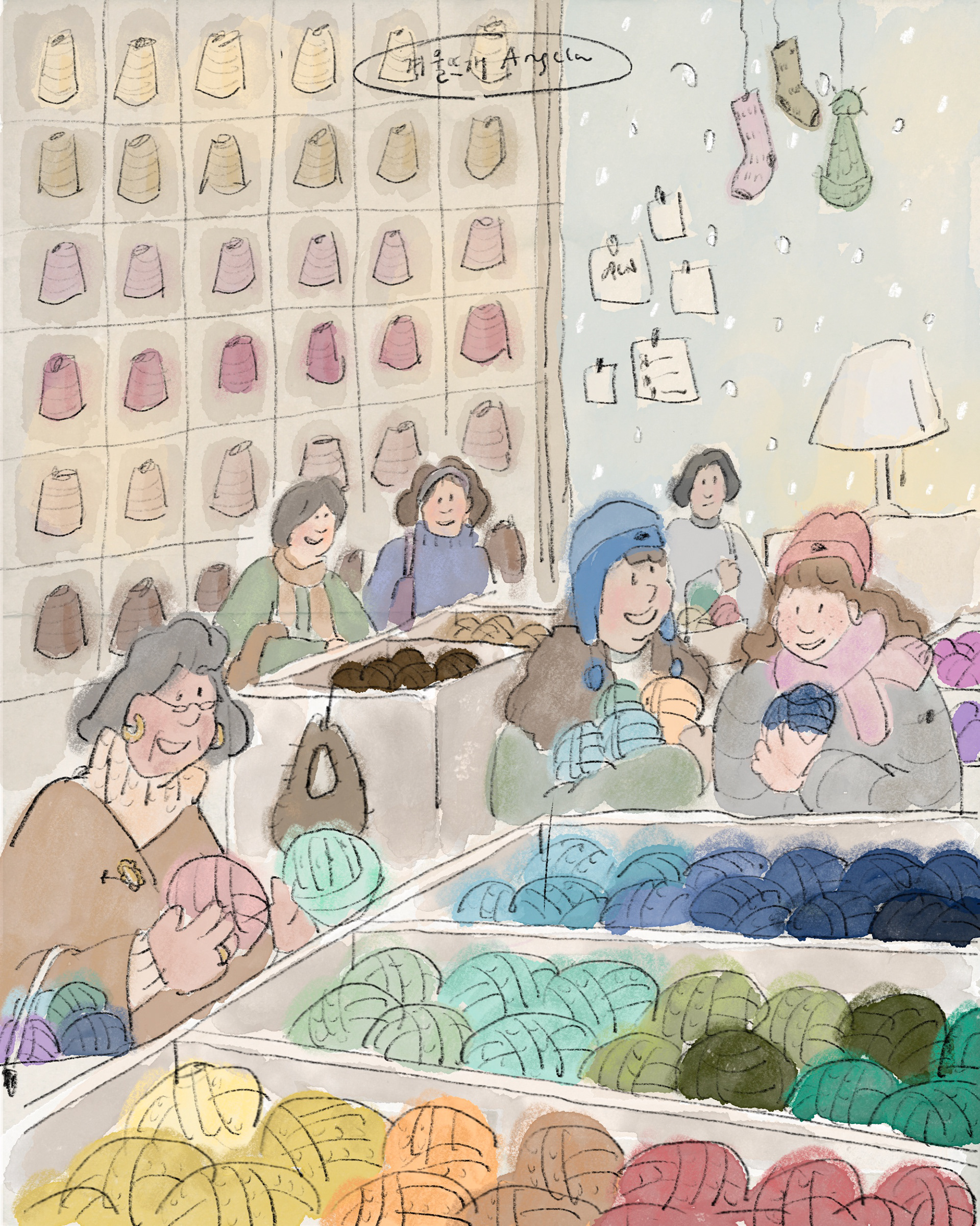 In the chilly streets of Seoul, this little knitting shop feels like a warm hug. Colorful yarns and