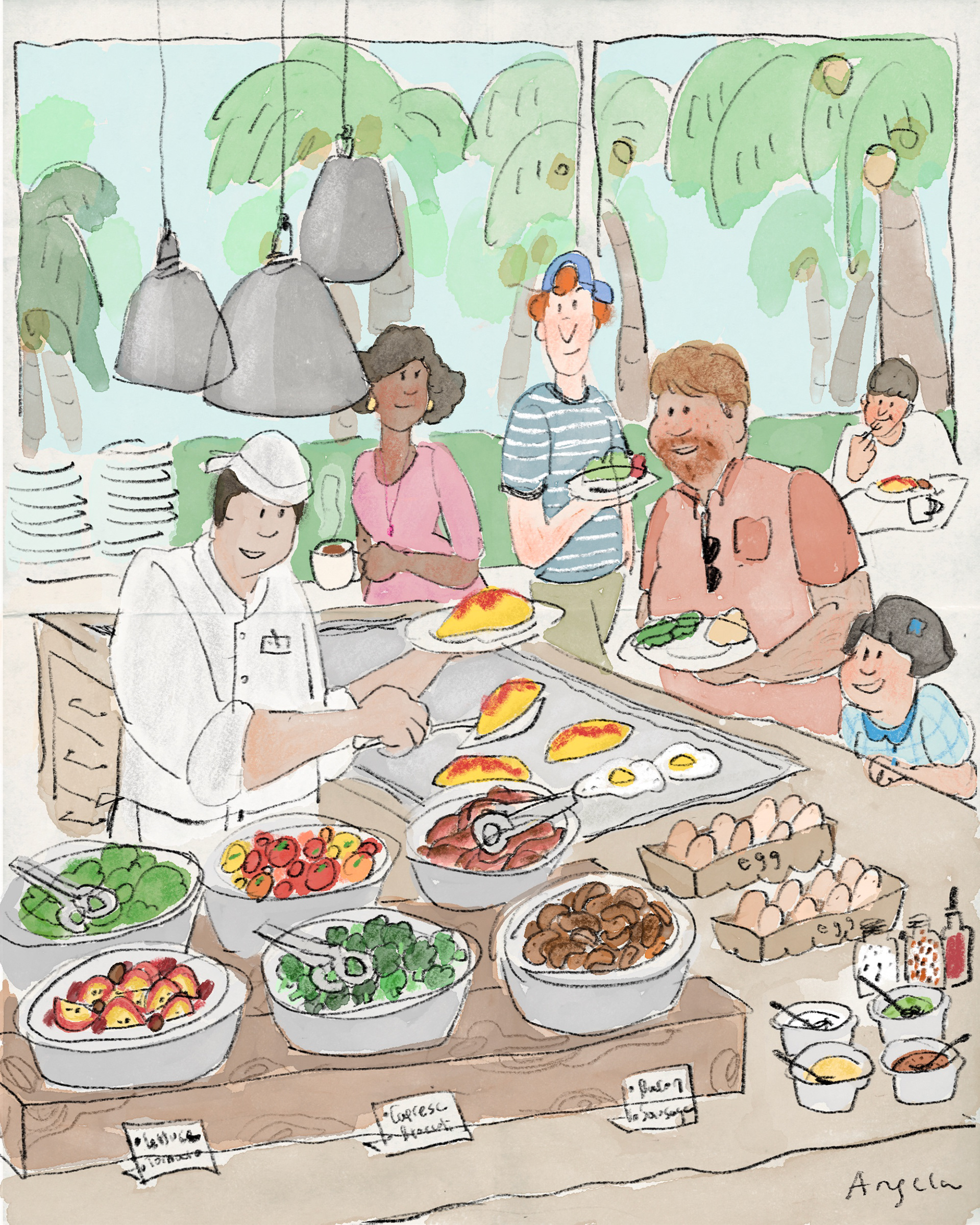 One of my favorite things about traveling is going down for breakfast in the morning. With messy hair and comfy clothes, having eggs, bread, and milk somehow feels like the purest kind of happiness — a small escape from everyday life.